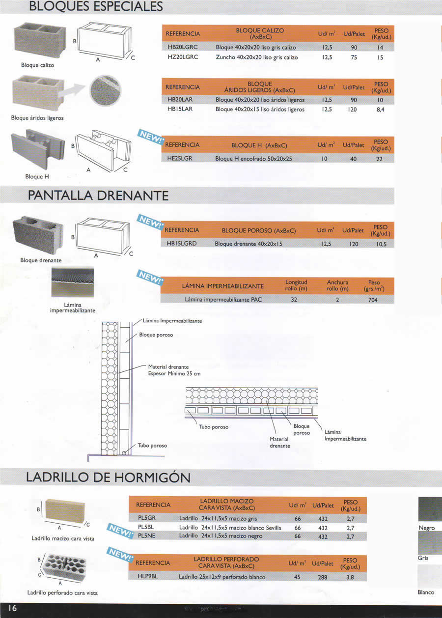 BLOQUE LISO A REVESTIR BLOQUE GRIS HIDROF 40x20x15