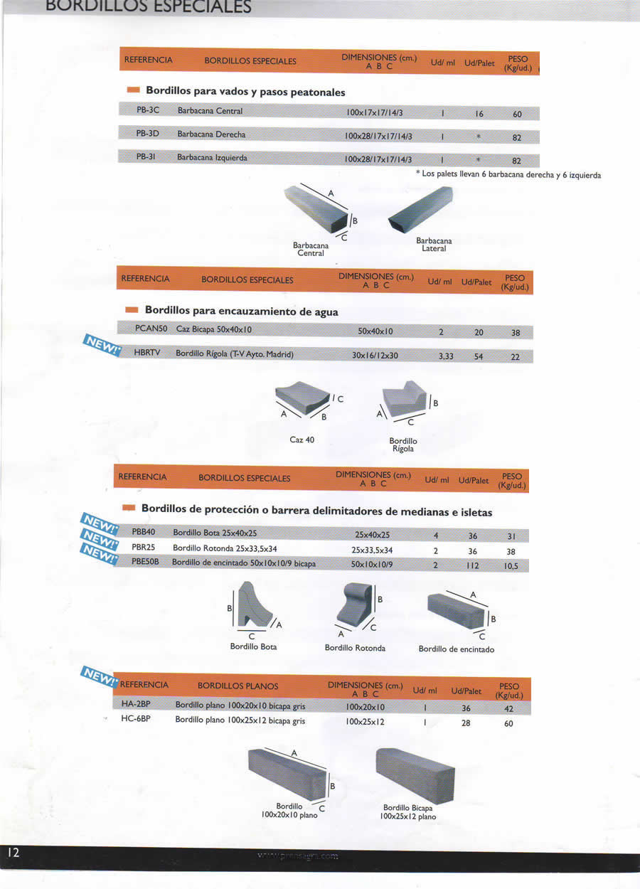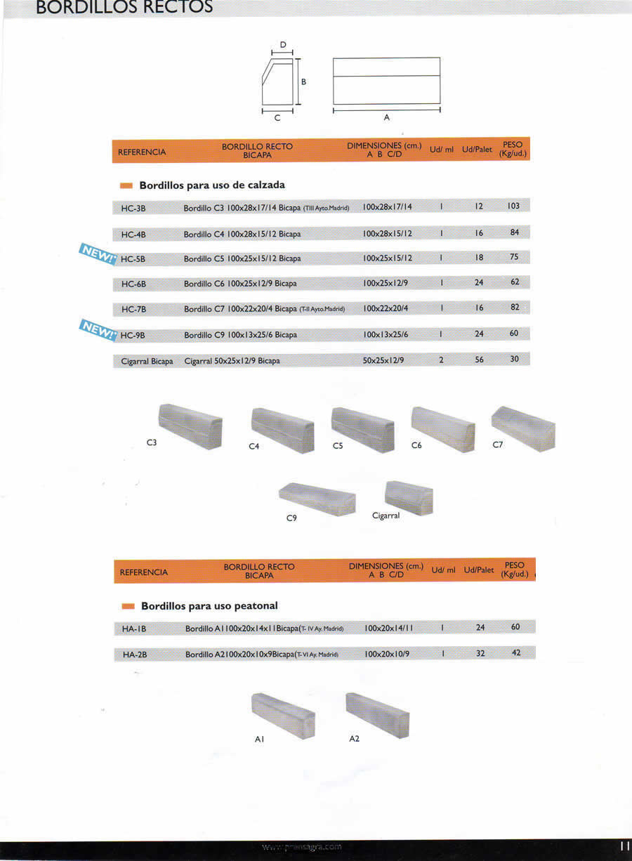 BORDILLOS BICAPA C-7 BICAPA T-II 100x22x10x4