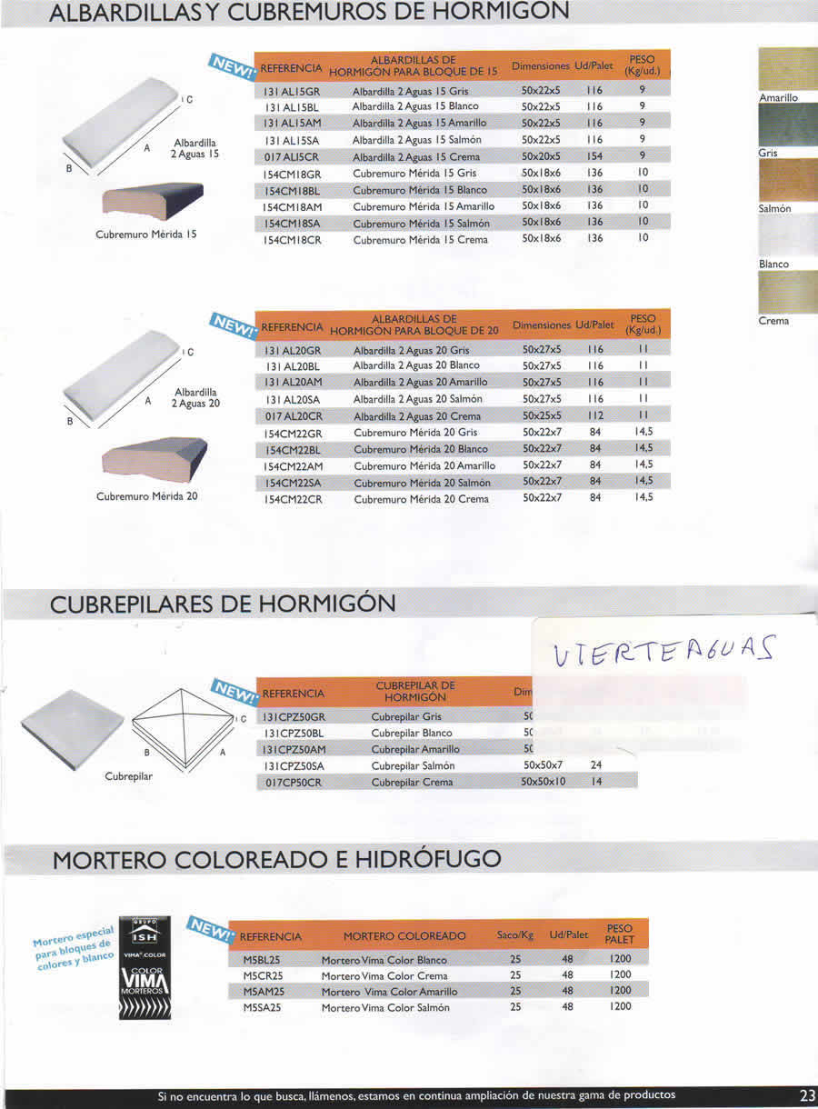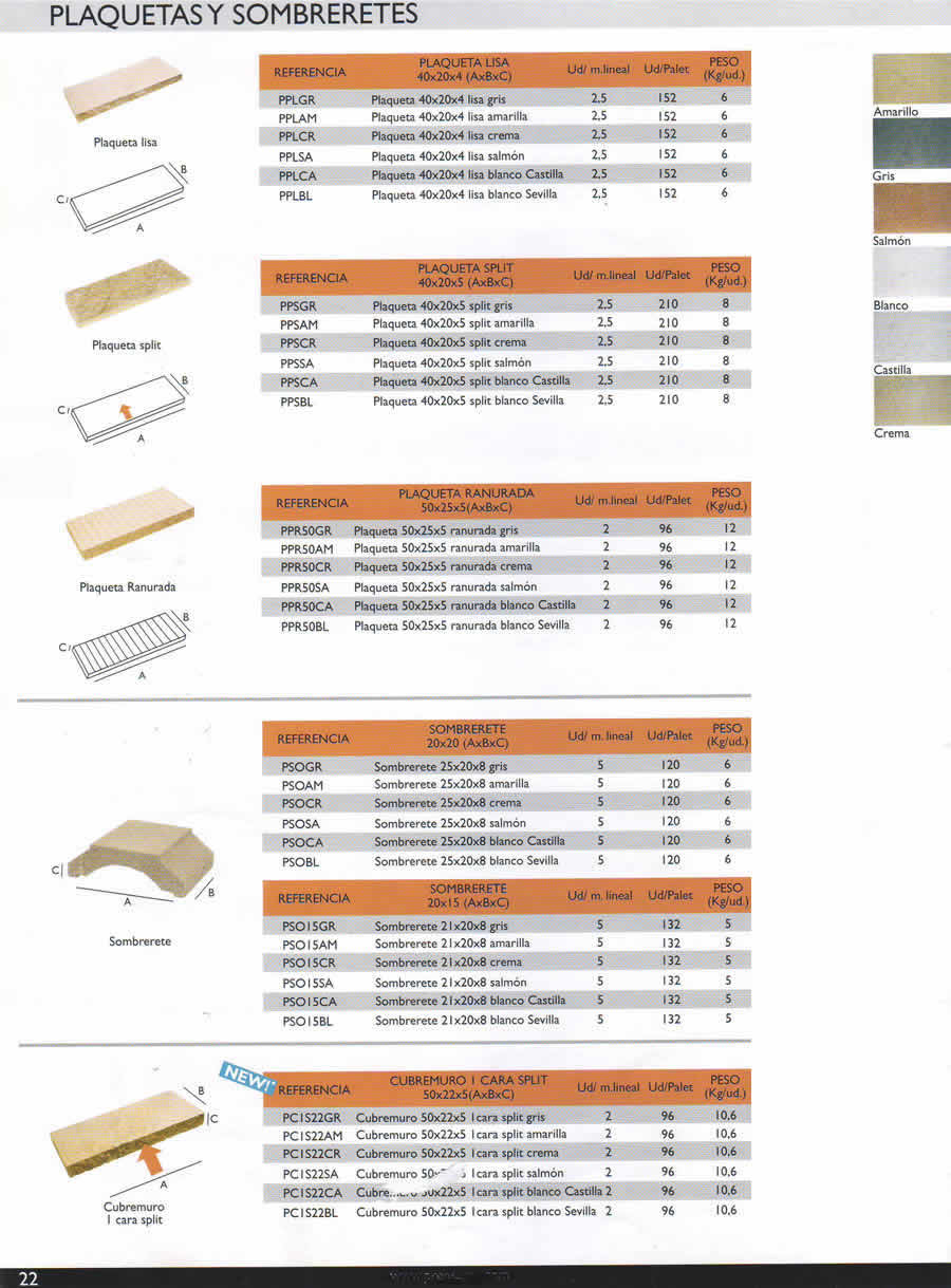 CUBREMUROS SOMBRERETE COLORES 20x25x8