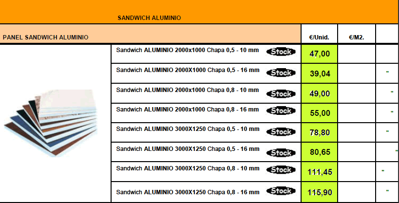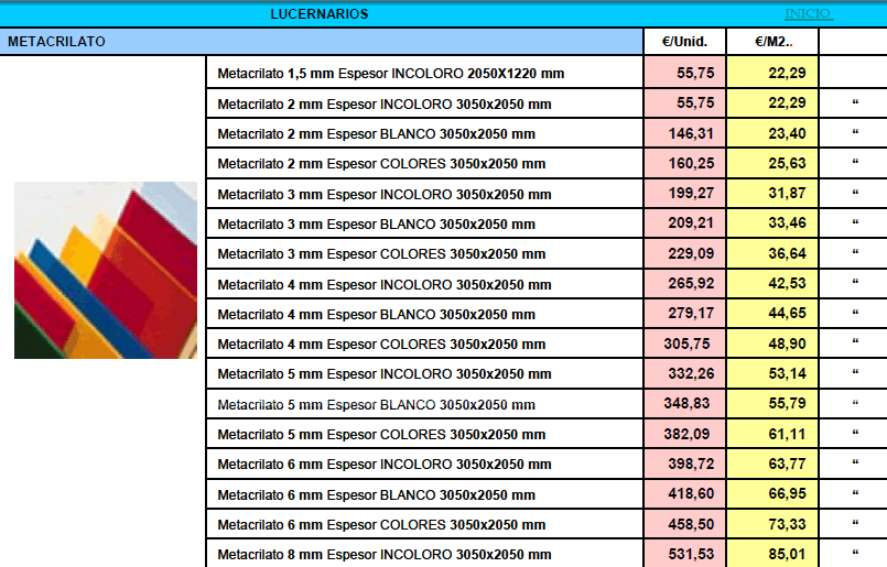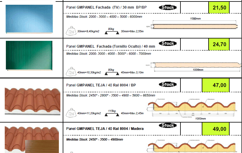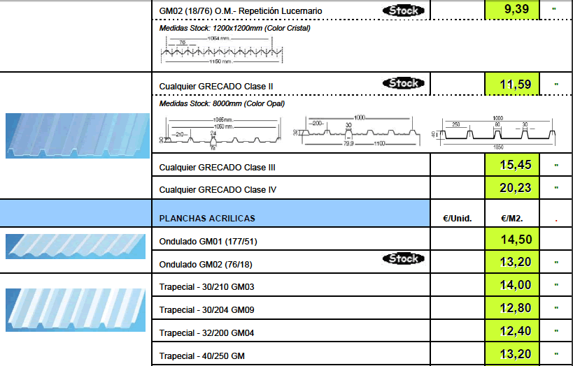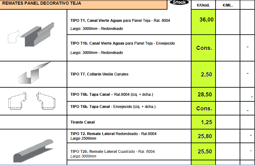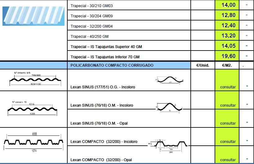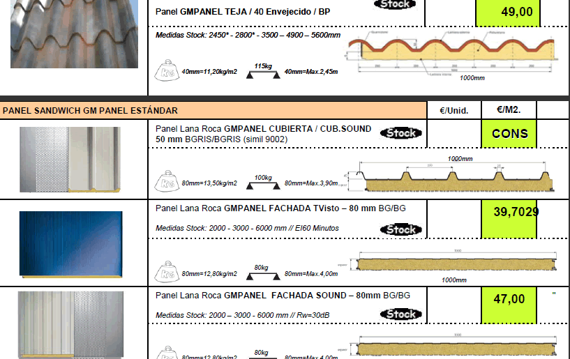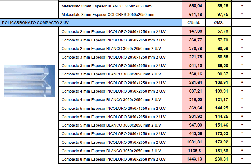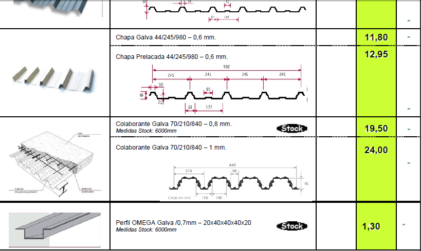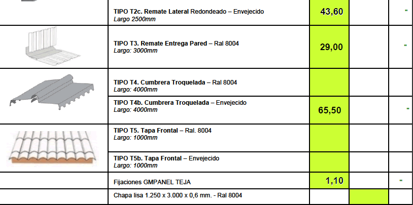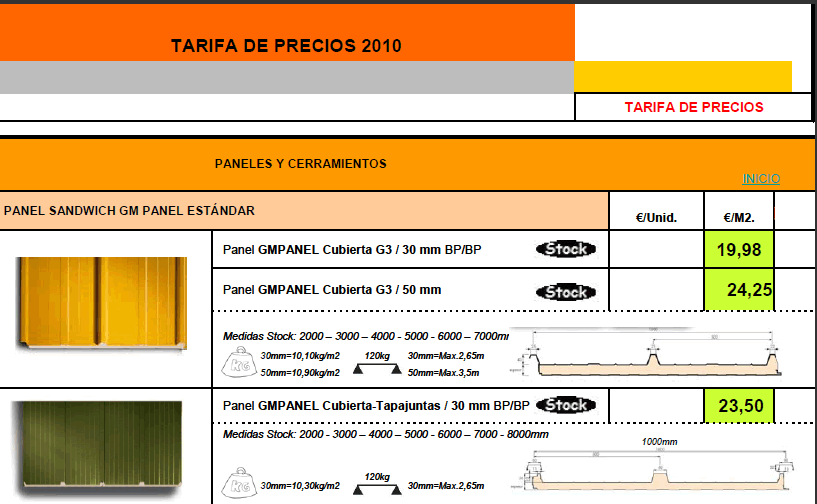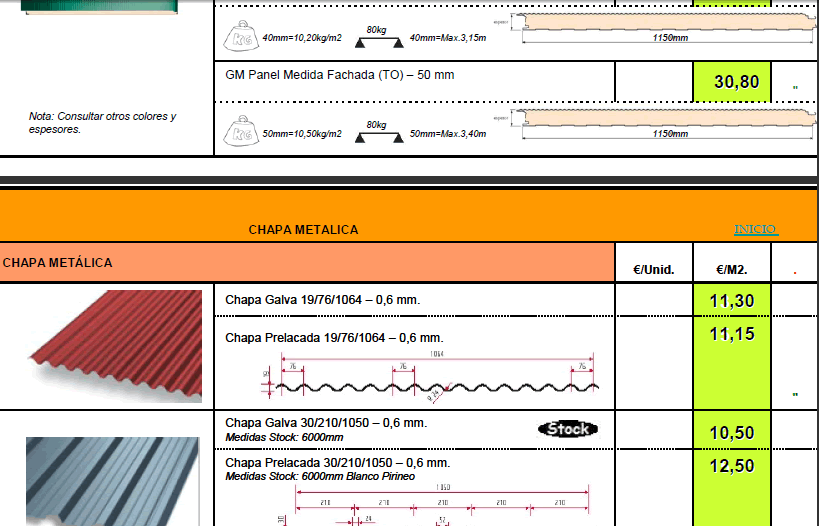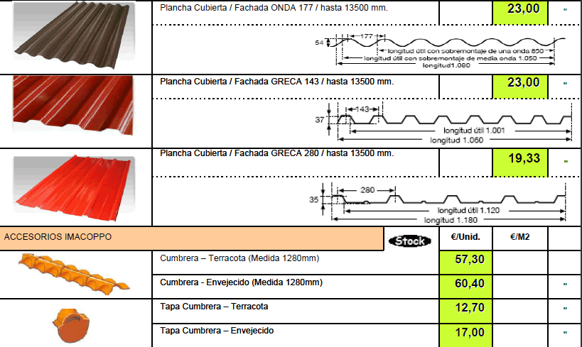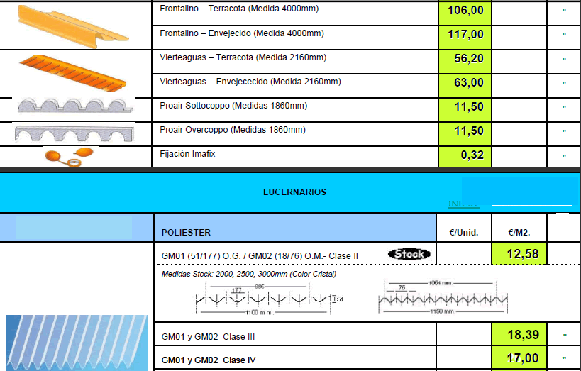 TARIFA DE PRECIOS MATERIALES DE CONSTRUCCION